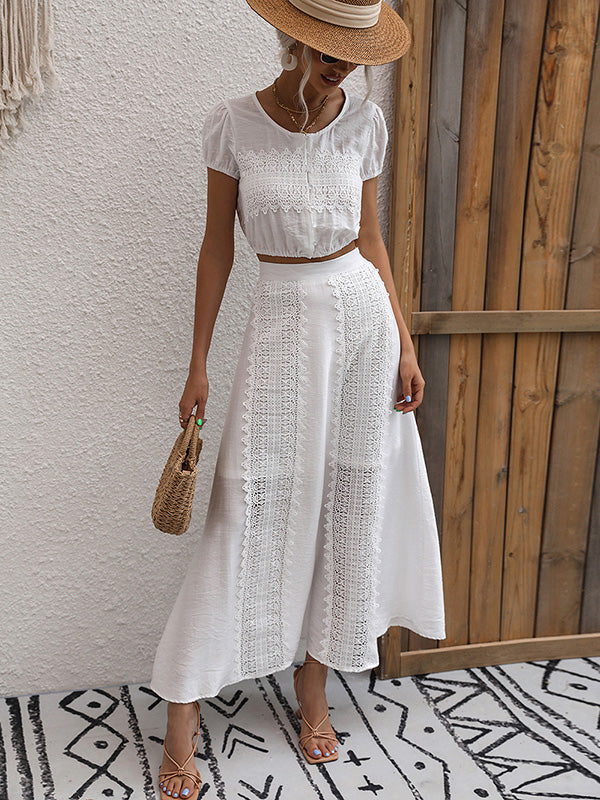 Bohemia A-Line Solid Color Round-Neck Two Pieces Set