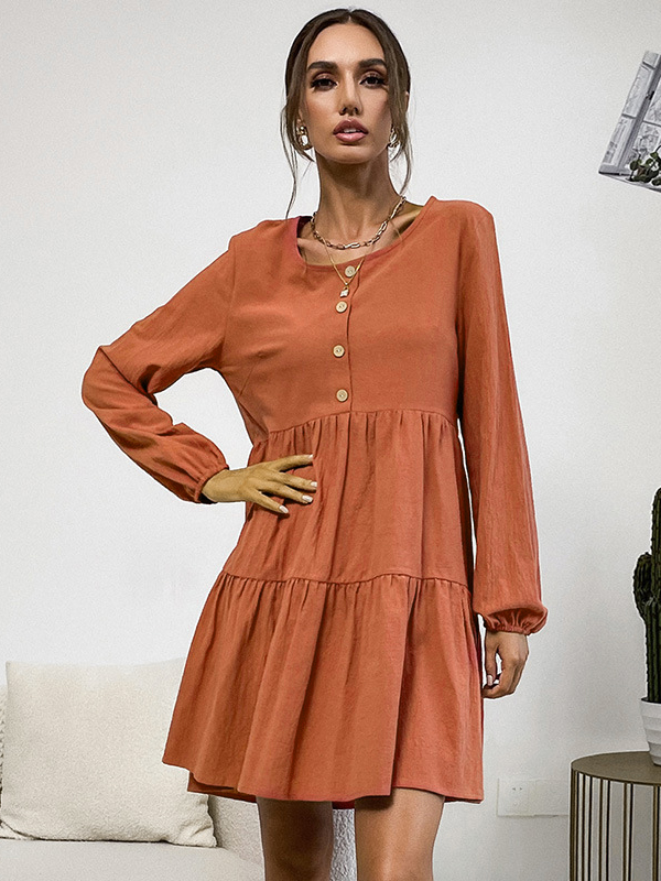 Bohemia Loose Buckle Round-Neck Dress
