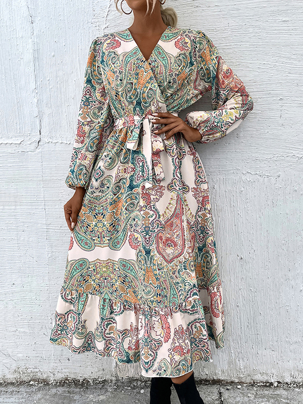 Bohemia Puff Sleeves Floral V-Neck Dress