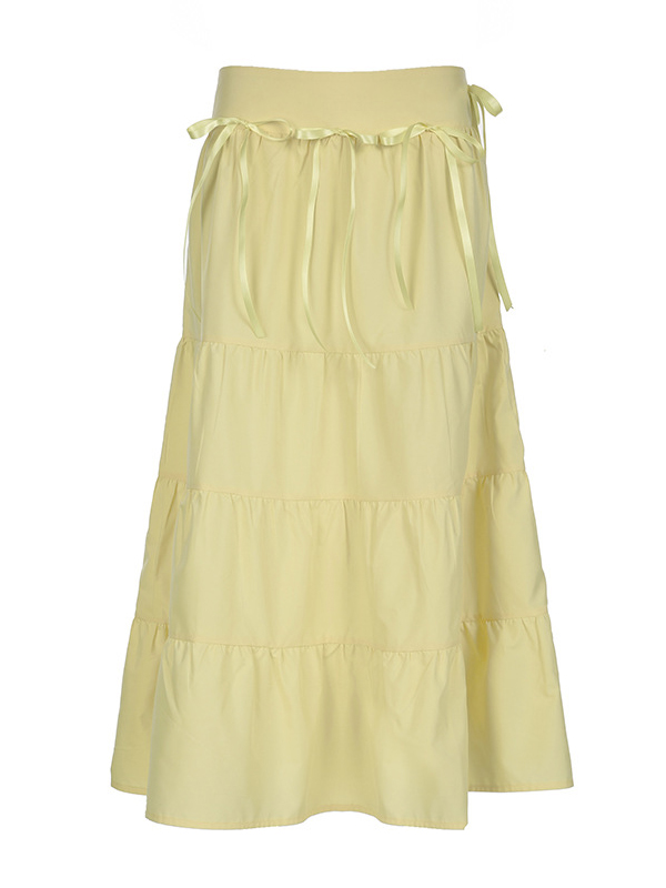 Bow Low Waist Skirt In Yellow