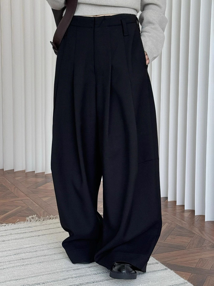 Buttoned Pleated Pockets Solid Color Zipper Loose Wide Leg Suit Pants