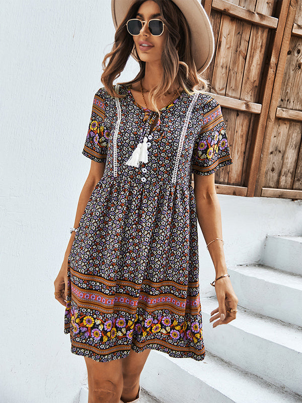 Casual A-Line Floral Printed Round-Neck Dress