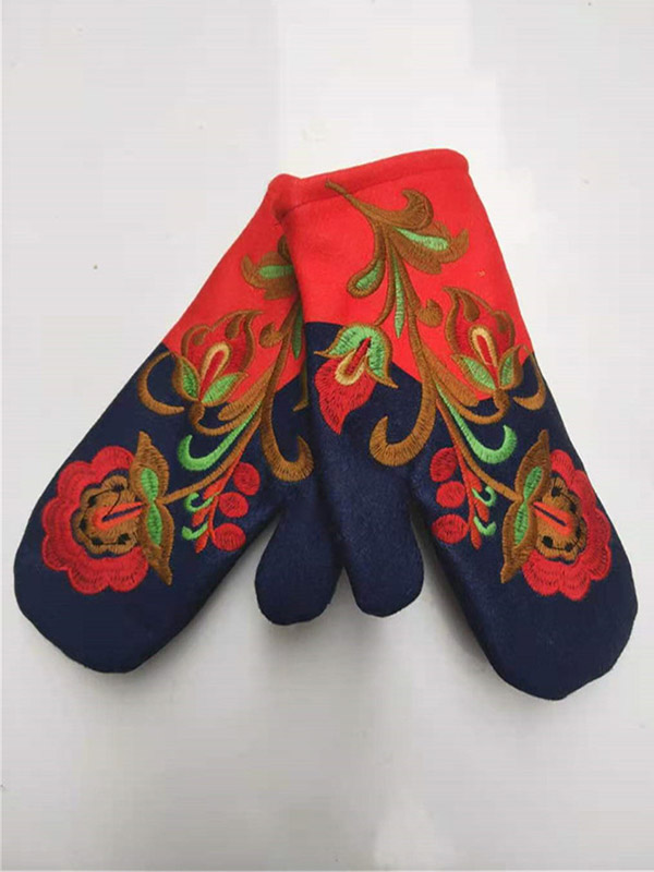 Casual Keep Warm Floral Embroidered Mittens