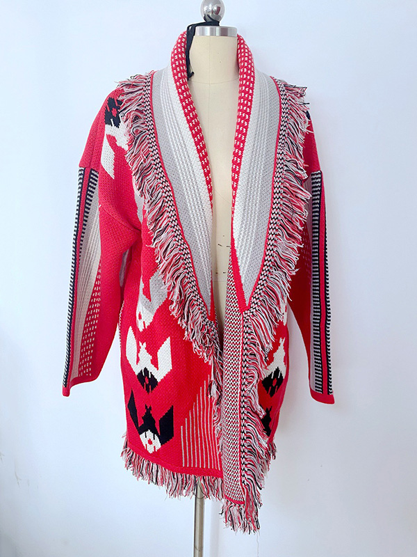Casual Loose Lace-Up Tasseled Embroidered Coat