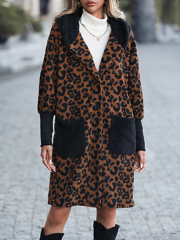 Casual Loose Leopard Patchwork Lapel Collar Coat