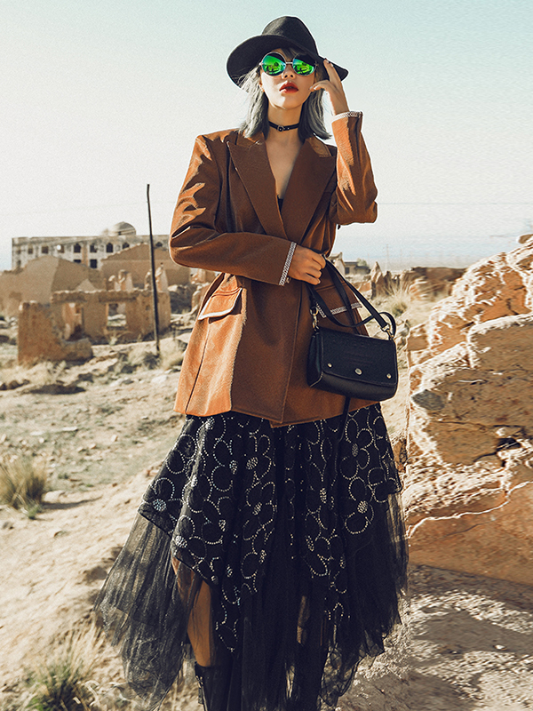 Casual Loose Tasseled Solid Color Lapel Collar Jackets&Coat