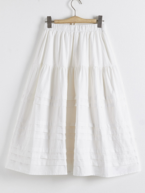Drawstring Elasticity Pleated See-Through Solid Color Split-Joint A-Line Loose Skirts
