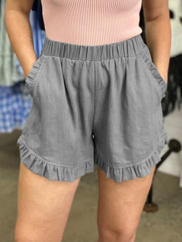 Elasticity High-Waisted Solid Color Split-Front Loose Wide Leg Shorts