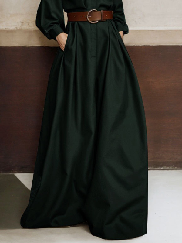 Elasticity No Belt Pockets Solid Color Loose Wide Leg Trousers Casual Pants Bottoms