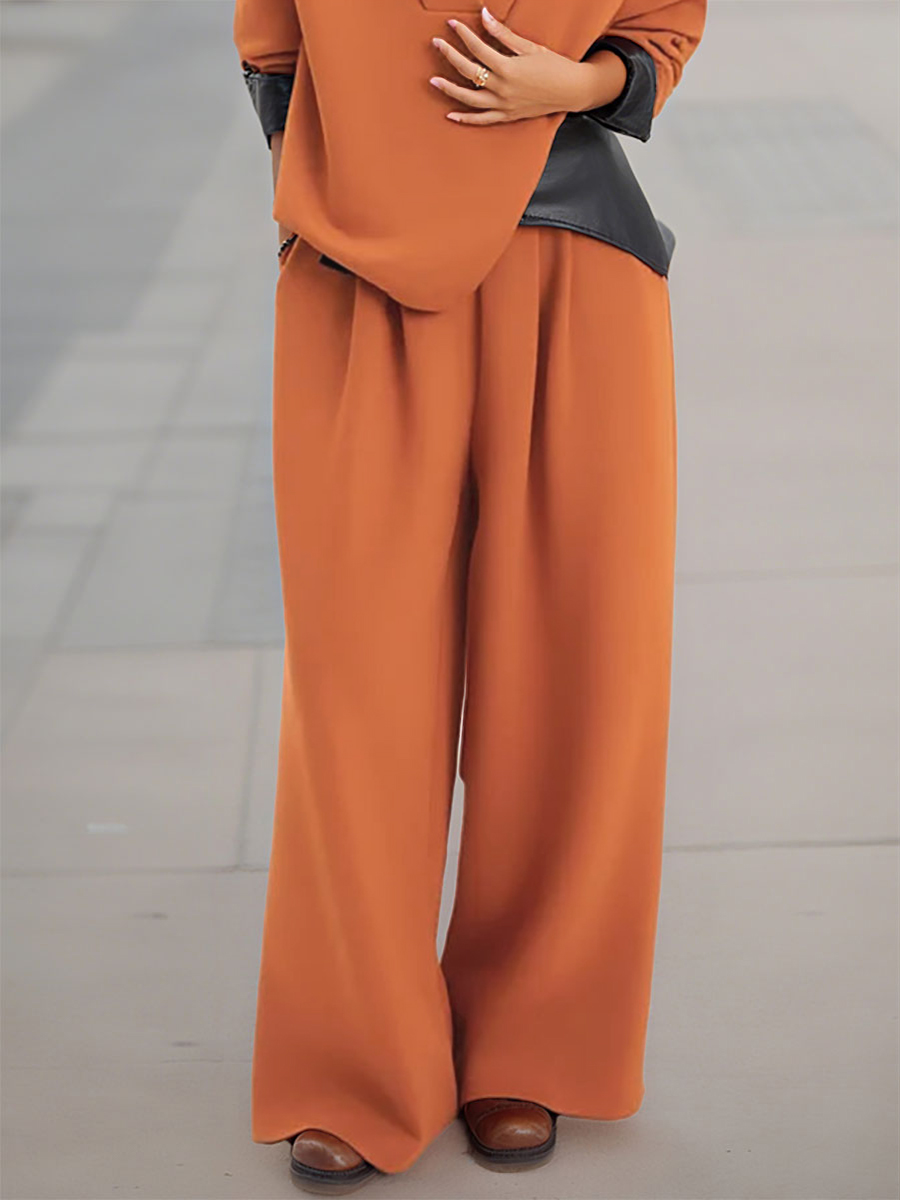 Elasticity Pleated Solid Color High Waisted Wide Leg Trousers Pants