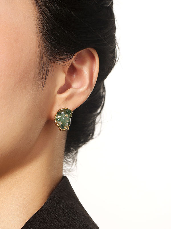 Elegant Natural Stone Pearl Gold Foil Stud Earrings
