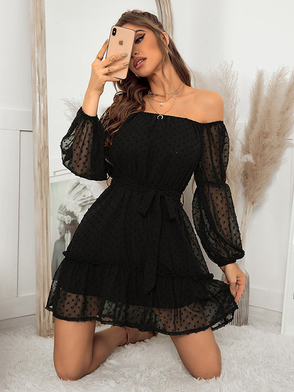 Going Out A-Line Loose Drawstring Polka-Dot Mini Dresses