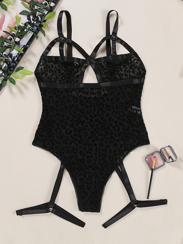 Leopard Print Bandage Hollow Teddy Lingerie