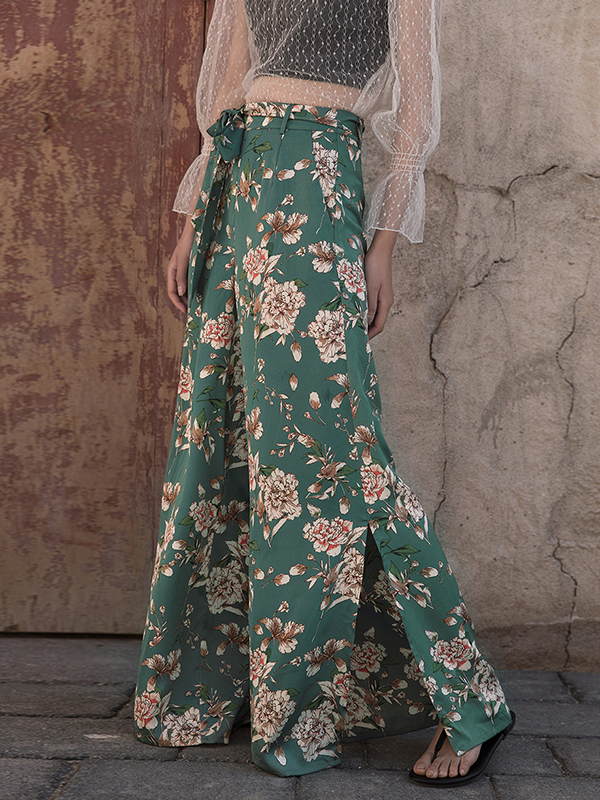 Loose Floral Printed Lace-Up Casual Pants Bottoms