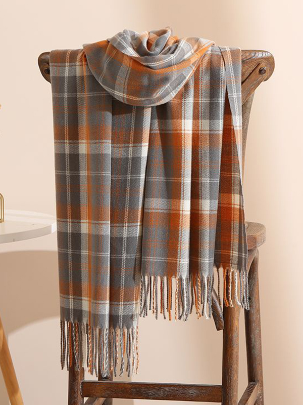 Original Creation Contrast Color Plaid Tasseled Shawl&Scarf
