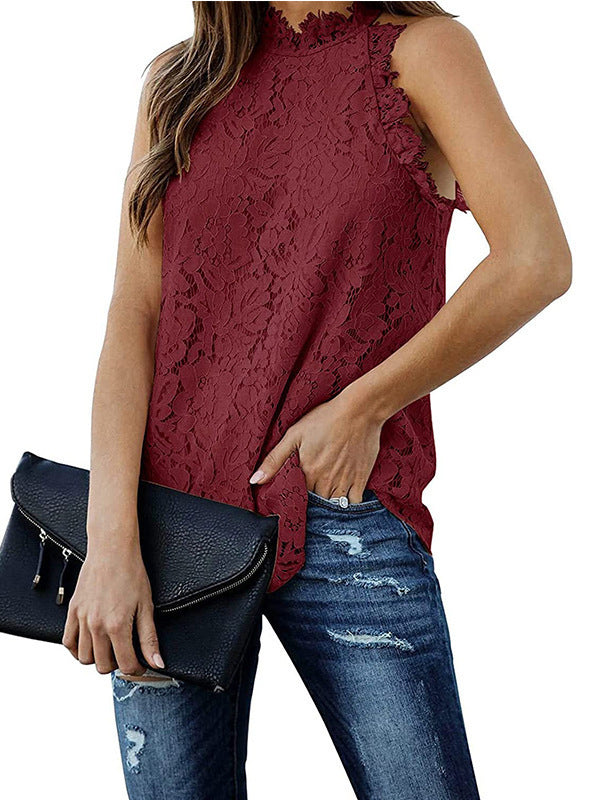 Original Lace Hollow Solid Color Halterneck Vest Top