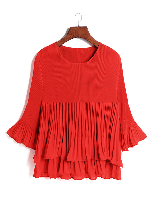 Original Loose Solid Color Pleated Falbala T-Shirt Top