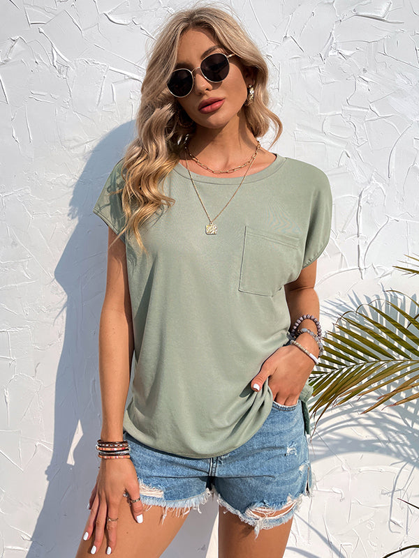 Simple Casual 5 Colors Round-Neck Short Sleeves T-Shirt Top