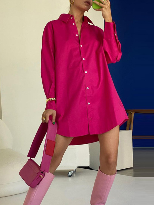Solid Color Long Sleeves Loose Lapel Blouses
