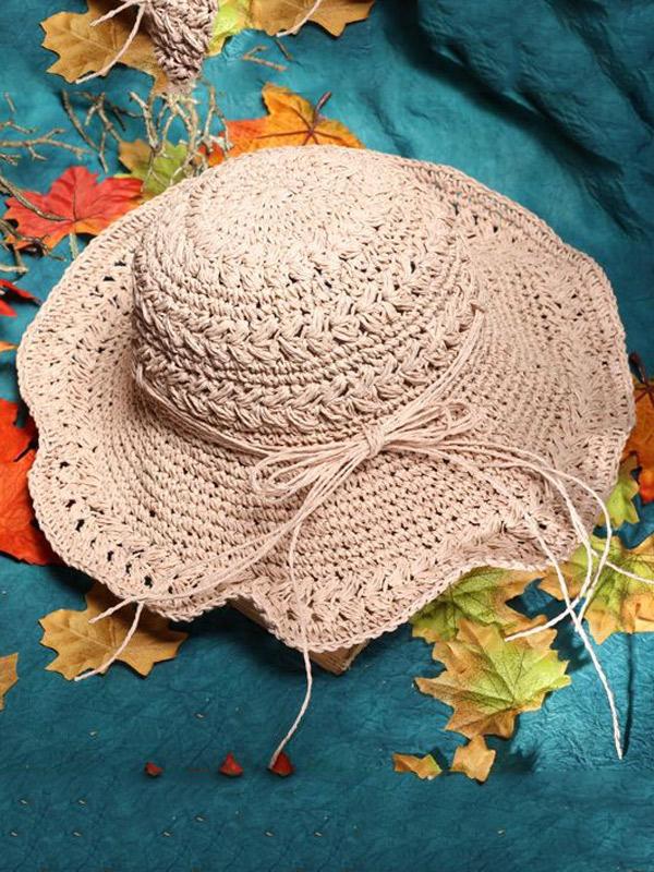 Sunscreen Solid Color Straw Woven Hollow Breathable Foldable Hat