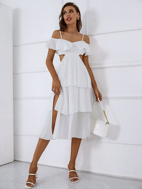 Vacation A-Line Solid Color Patchwork One-Shoulder Maxi Dress