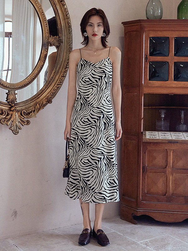 Vacation H-Line Sleeveless Zebra-Stripe V-Neck Dress