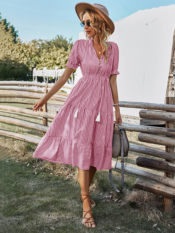 Vacation High Waisted Loose Striped Dress