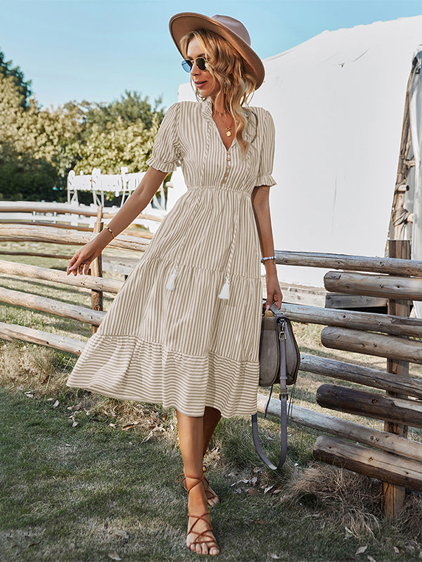 Vacation High Waisted Loose Striped Dress