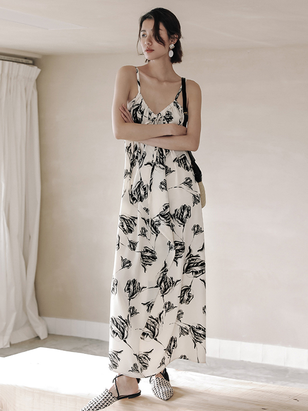 Vacation Loose H-Line Floral Printed V-Neck Dress