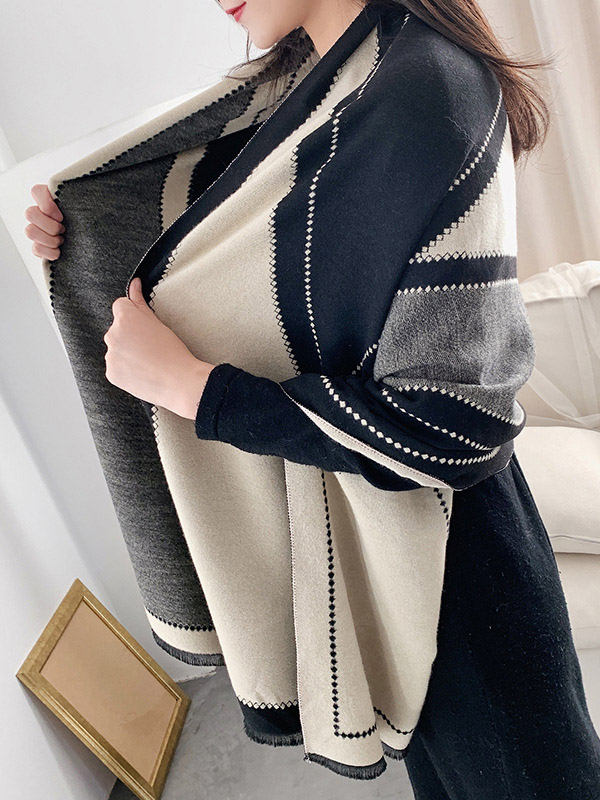 Warm Thicken Fringed Printed Scarf